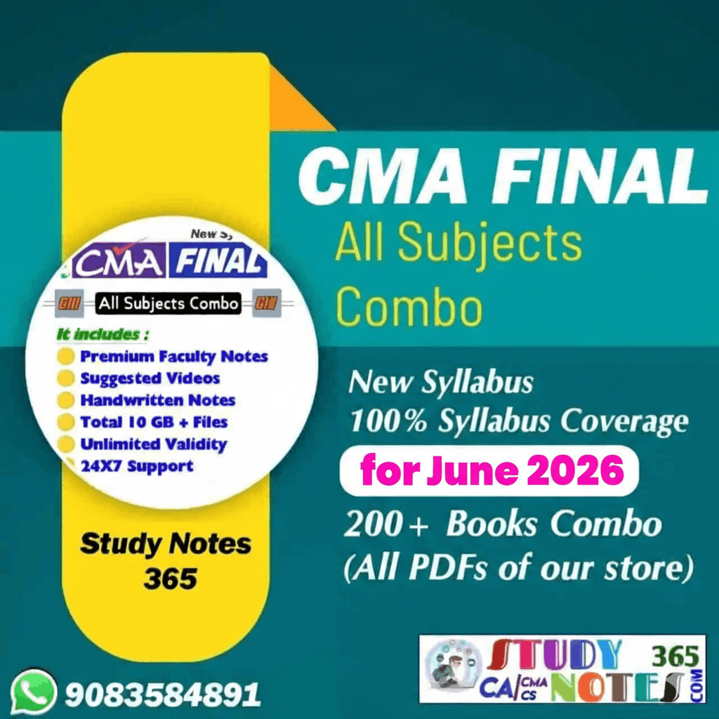 These study material has been designed to make it easier for you to study, understand, and grasp the concepts of CMA Final All Subjects in a simple yet comprehensive manner.